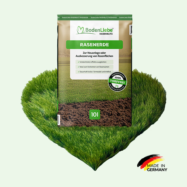 Ja, die BodenLiebe RASENERDE ist für die Nachsaat geeignet. Die feine, stabile Struktur aus mineralischen und organischen Bestandteilen schafft eine optimale Bettung für Rasensamen.