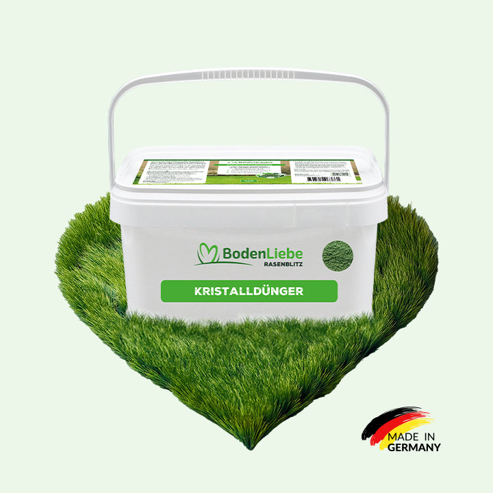Ein gesunder Rasen braucht mehr als nur Nährstoffe –Wasser ist der Schlüssel, damit dein Rasen die volle Wirkung unseres BodenLiebe KRISTALLDÜNGERS entfalten kann. Ohne ausreichende Feuchtigkeit können die Nährstoffe nicht aufgenommen werden – der Rasen bleibt gestresst und anfällig für Verbrennungen oder Trockenheit.